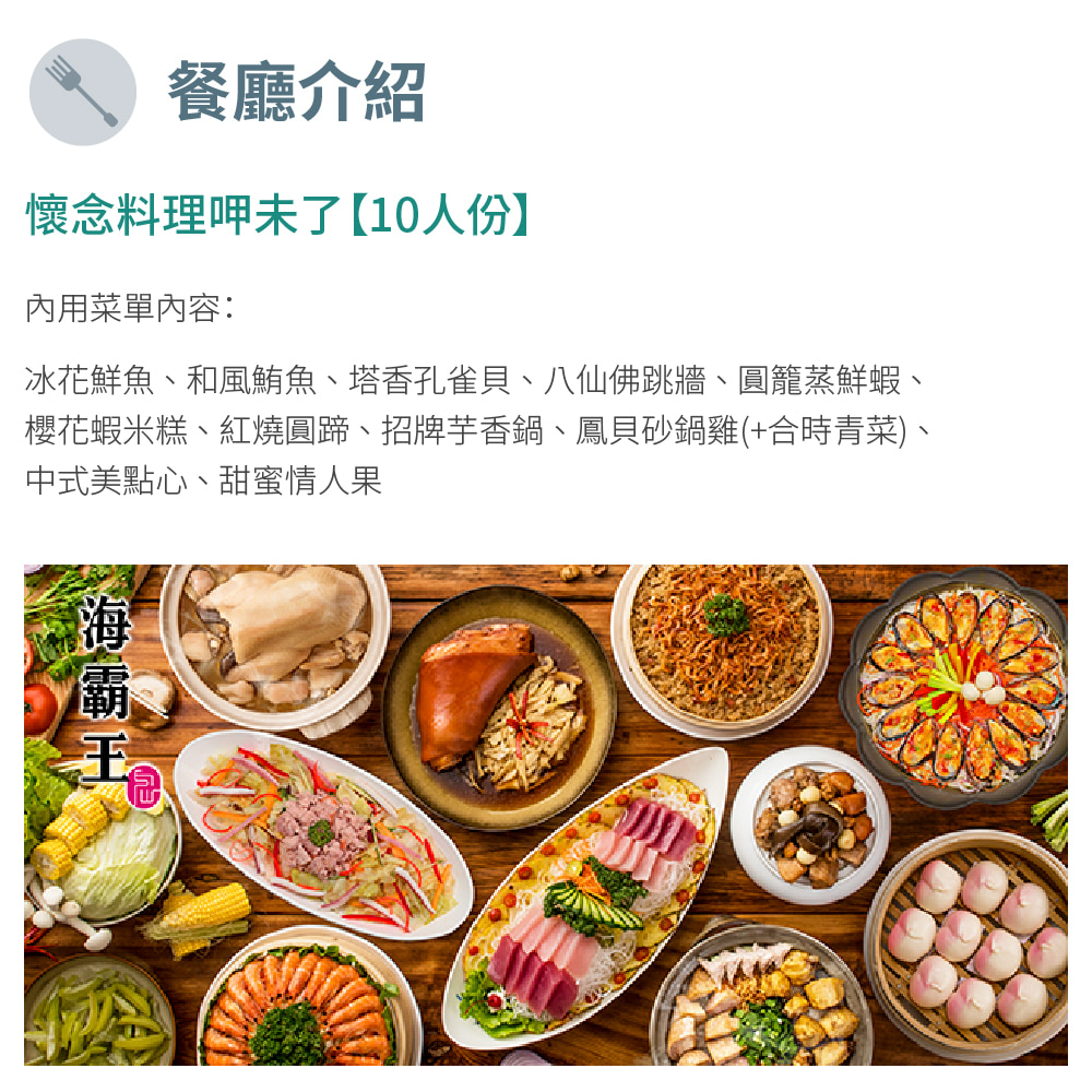 【海霸王】懷念料理呷未了10人餐券(六館通用)MO