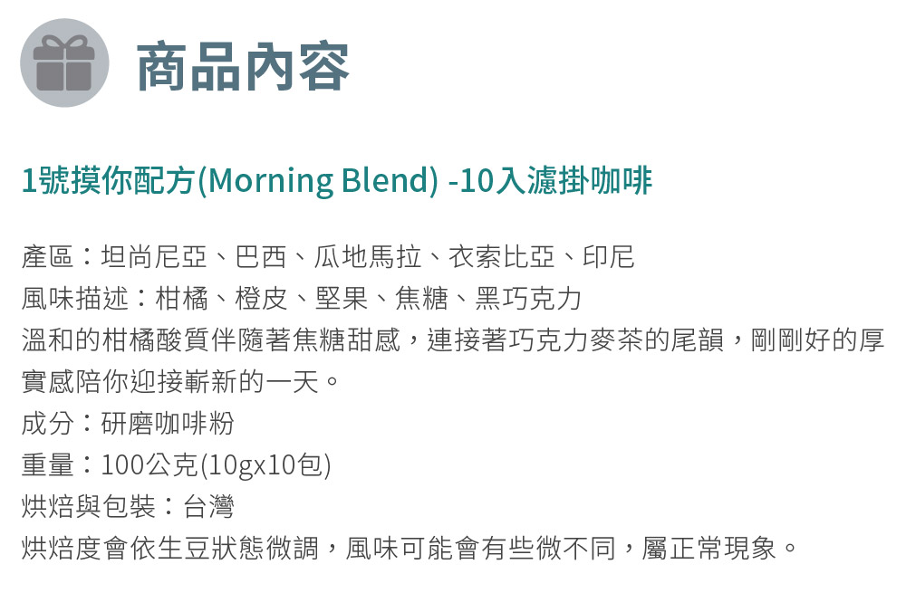 有事沒事萃一杯【TRAY】1號摸你配方Morning Blend濾掛咖啡10入提貨券(MO)