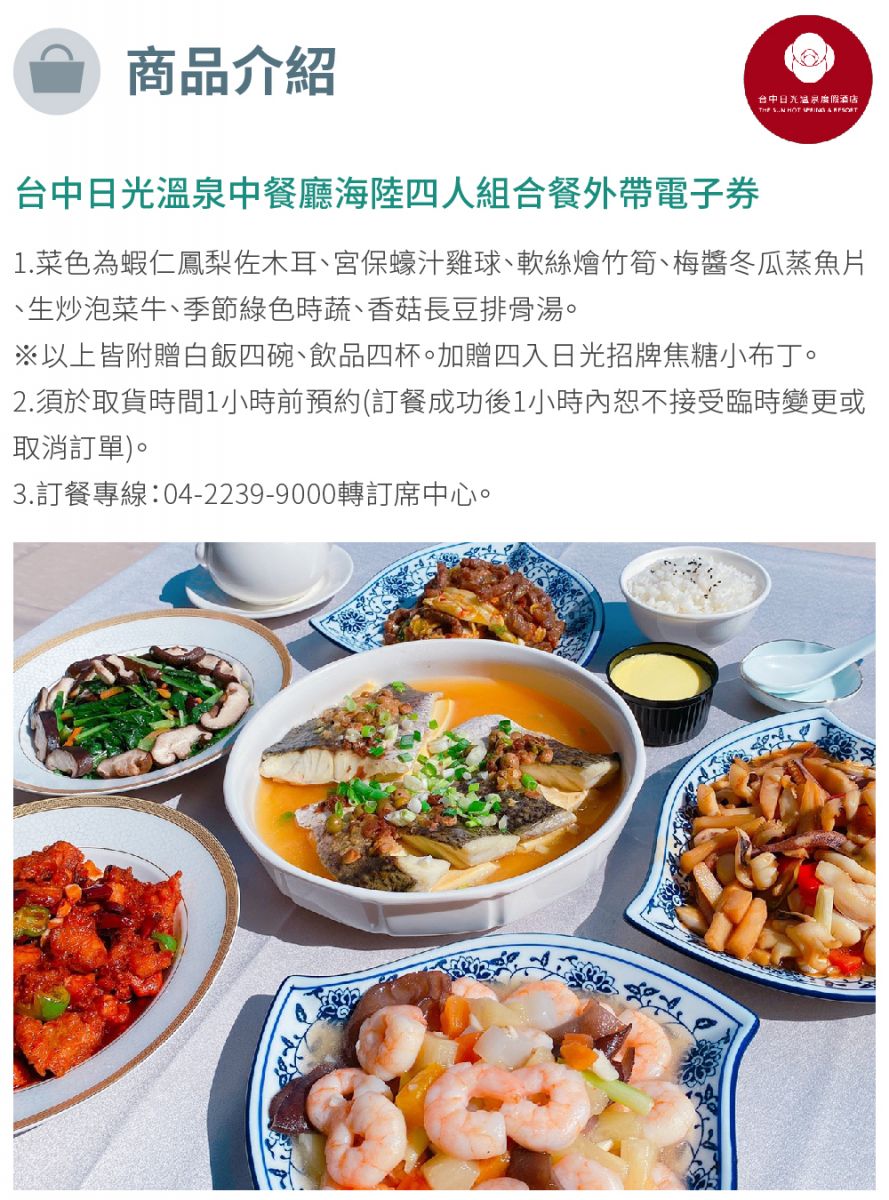 台中日光溫泉中餐廳海陸四人組合餐外帶電子券(MO)
