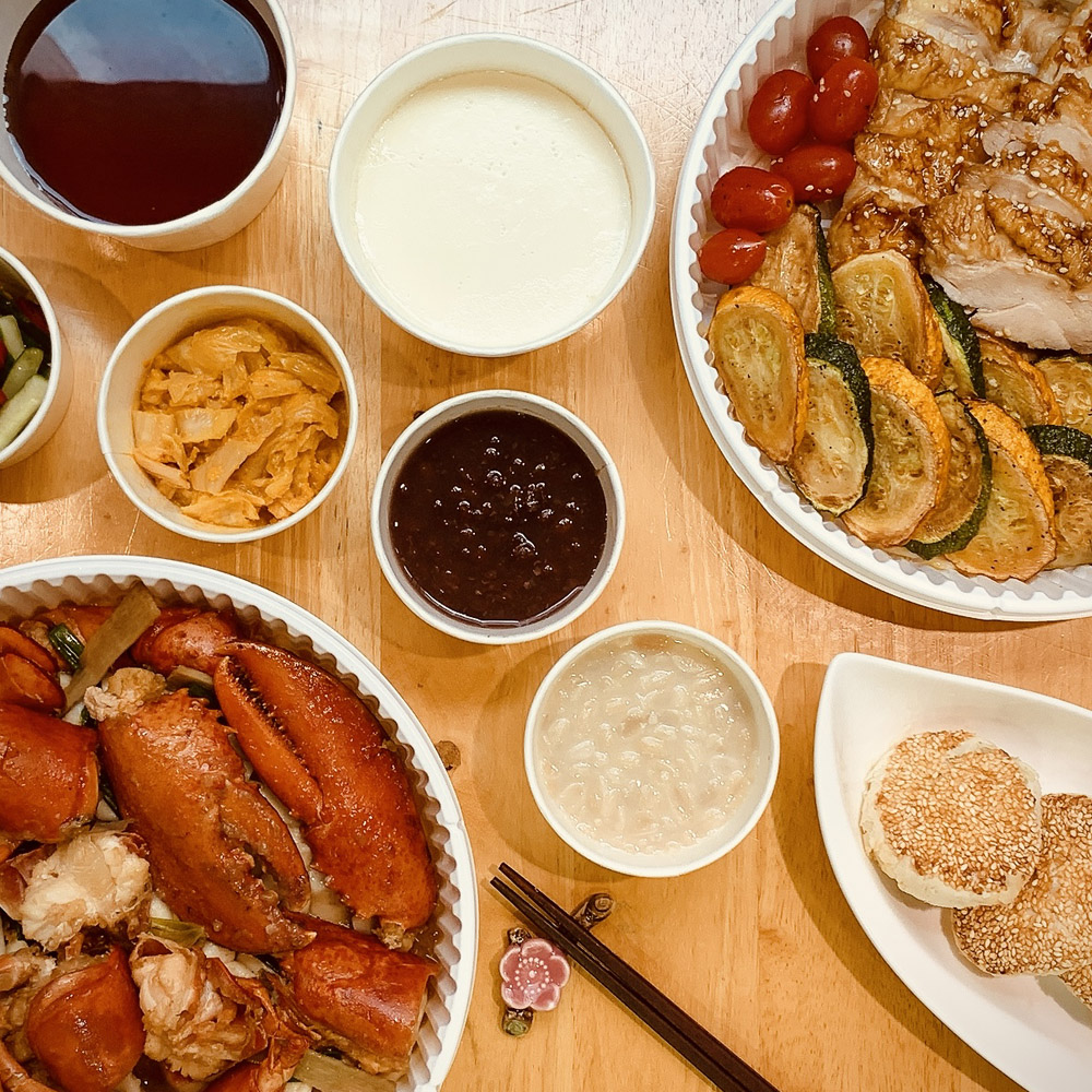薑蔥龍蝦煨粿條 整隻的波士頓龍蝦送上桌,飽滿彈牙的龍蝦肉,大口咬下超滿足!!粿條配上鮮味湯汁,也是超讚享受!! 照燒蜜汁烤雞腿 以照燒蜜汁烤出的雞腿,肉彈而不柴,與烤節瓜是天生一對的搭配!沾滿蜜汁的表皮與淡淡的白芝麻香氣,更是把香氣提升,讓你一口接著一口! MJ招牌手工豆花 根本是豆花界的人氣網紅,有著帶著主廚的初心,滿滿的清新甜香,爲美味的一餐畫下完美句點!! 早餐必點手工蔥燒餅、主廚特選小菜阿殺力送給你![]()
