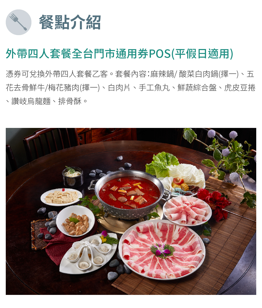 【鼎王麻辣鍋】外帶四人套餐全台門市通用券POS(平假日適用)