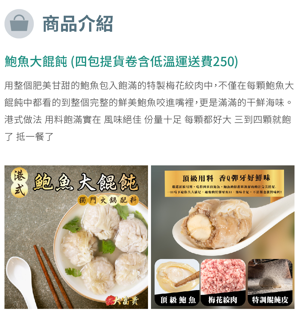 【台北】鮑魚大餛飩 (四包提貨卷含低溫運送費250)