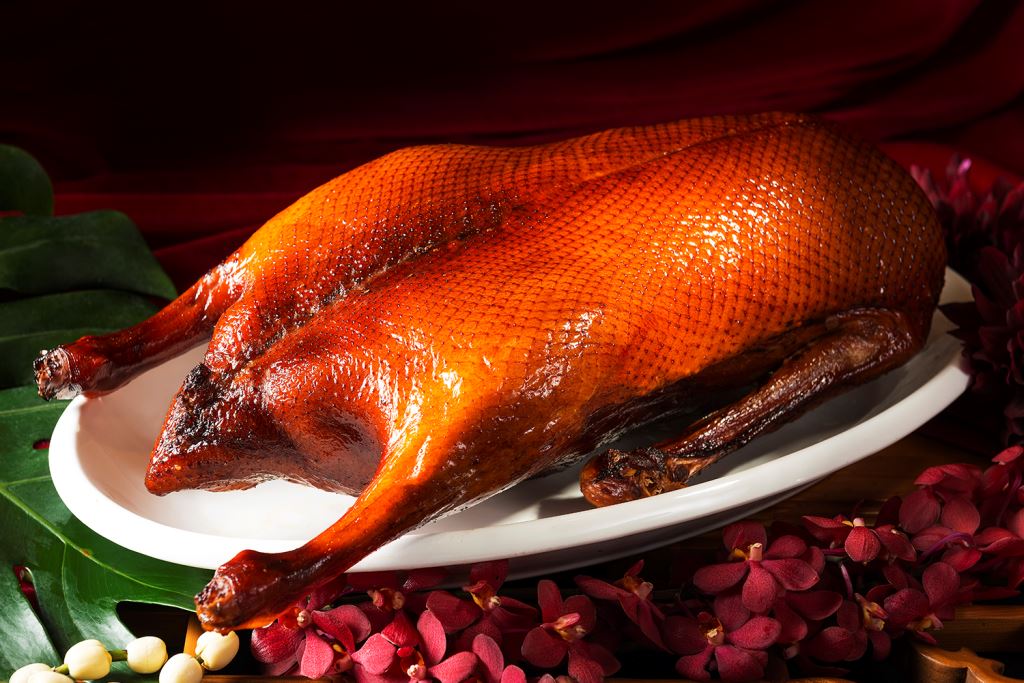 水源豐沛的蘭陽平原,絕佳的氣候環境造就出獨特豐富的特色食材,選用宜蘭飼養的白蘿蔓鵝,採用粵式手法將十多種中藥材醃料塗抹入味,再經過相思木煙燻、淋油等工序,酥脆外皮、肉質肥美,貼心提供片皮鵝、雲脂鵝絲玳瑁、啤酒醬菜鵝骨湯等三種吃法,滿足味蕾饗宴。
