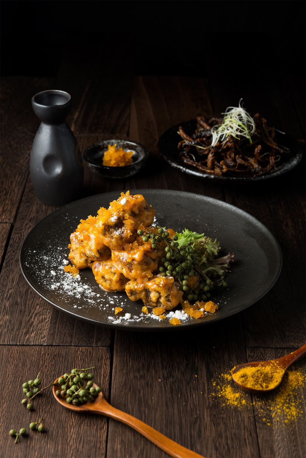 主廚獨創料理!嫩子排以特製「青麻椒千島醬」翻炒,以當地金棗蜜餞入菜,不只果香盈口,麻香滋味增添味蕾層次。