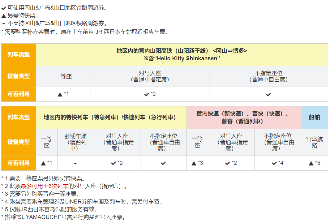 ・ 岡山&廣島&山口地區鐵路周遊券可在地圖上的有效區域無限制乘坐。