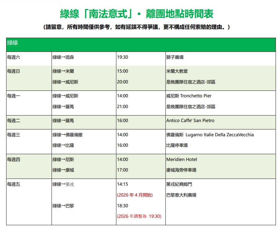綠線南法意式7日遊+單人房附加費6晚【成人票】12歲以上