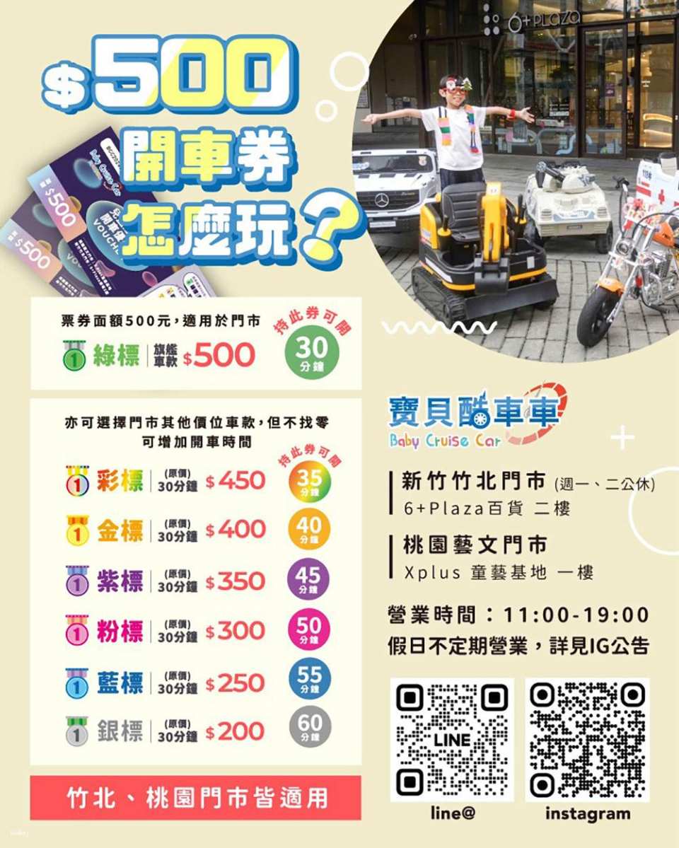 桃園/新竹【寶貝酷車車Baby Cruise】電動小汽車兒童超跑體驗券(MO)