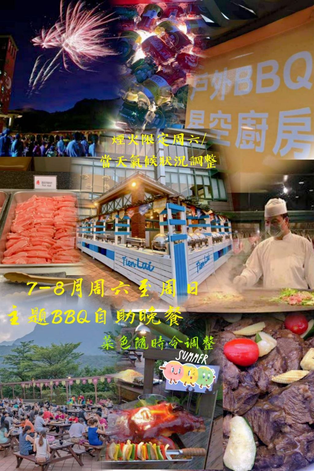 雙重饗宴(戶外星空廚房BBQ+蒙古烤肉自助餐)加碼啤酒無限暢飲+餐期活動表演(週六限定)+樂團演唱(週六、9/9、9/10限定)。