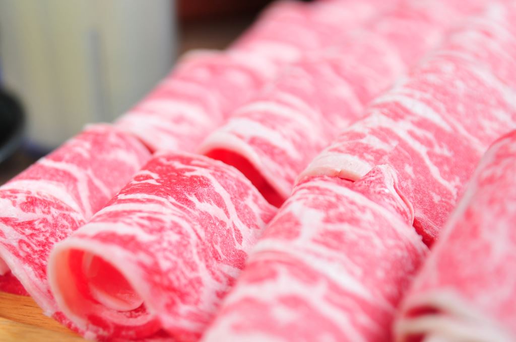 『霜降』位於牛隻的肩胛處,為運動量較大且沒有隔膜及莖管通過的部位,肉色呈現粉紅色,油花均勻分布細緻,肉質口感十分滑嫩。