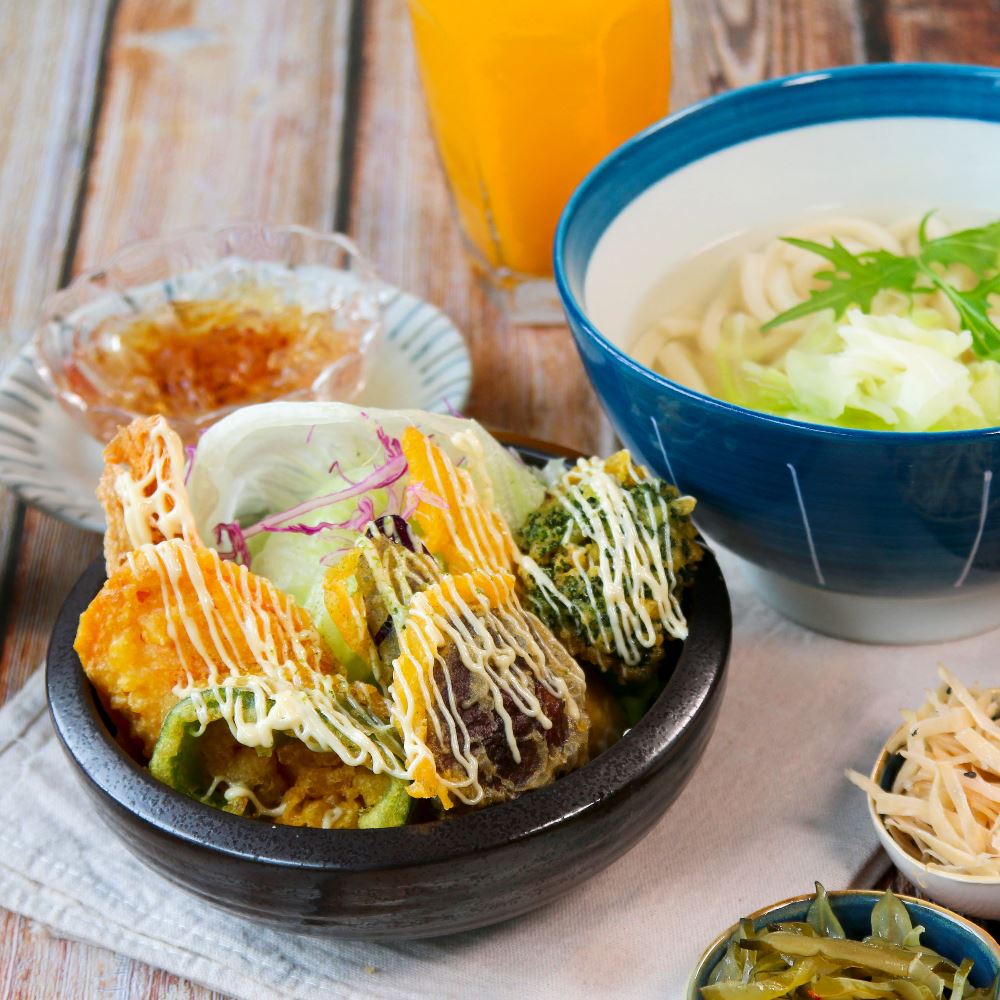 美味烏龍麵搭配滿滿新鮮炸蔬食,Q彈的烏龍麵條,清爽口感的湯汁,解膩又順口,絕對是天氣漸熱的最佳選擇!