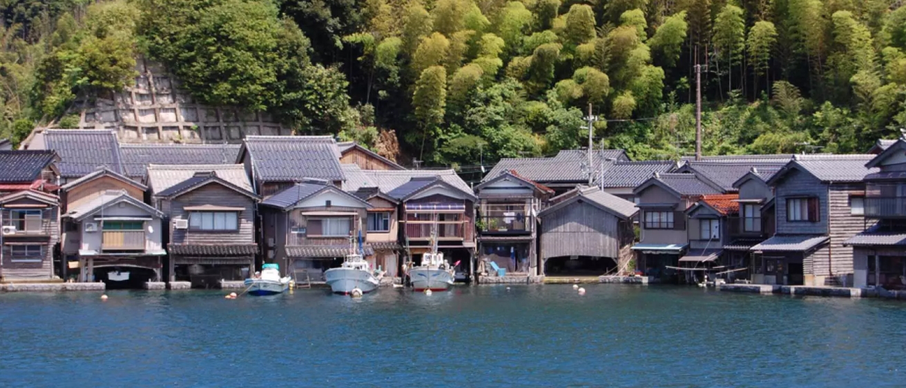 被譽為京都威尼斯,位於天橋立以北大約15公里處,坐落在山區與伊根灣之間,由於自古以來位於中國大陸和京都的貿易路線之間,發展成專門以漁業為主的市鎮,至今仍保有寧靜純樸的氣息,被稱為日本最美的臨海小鎮。