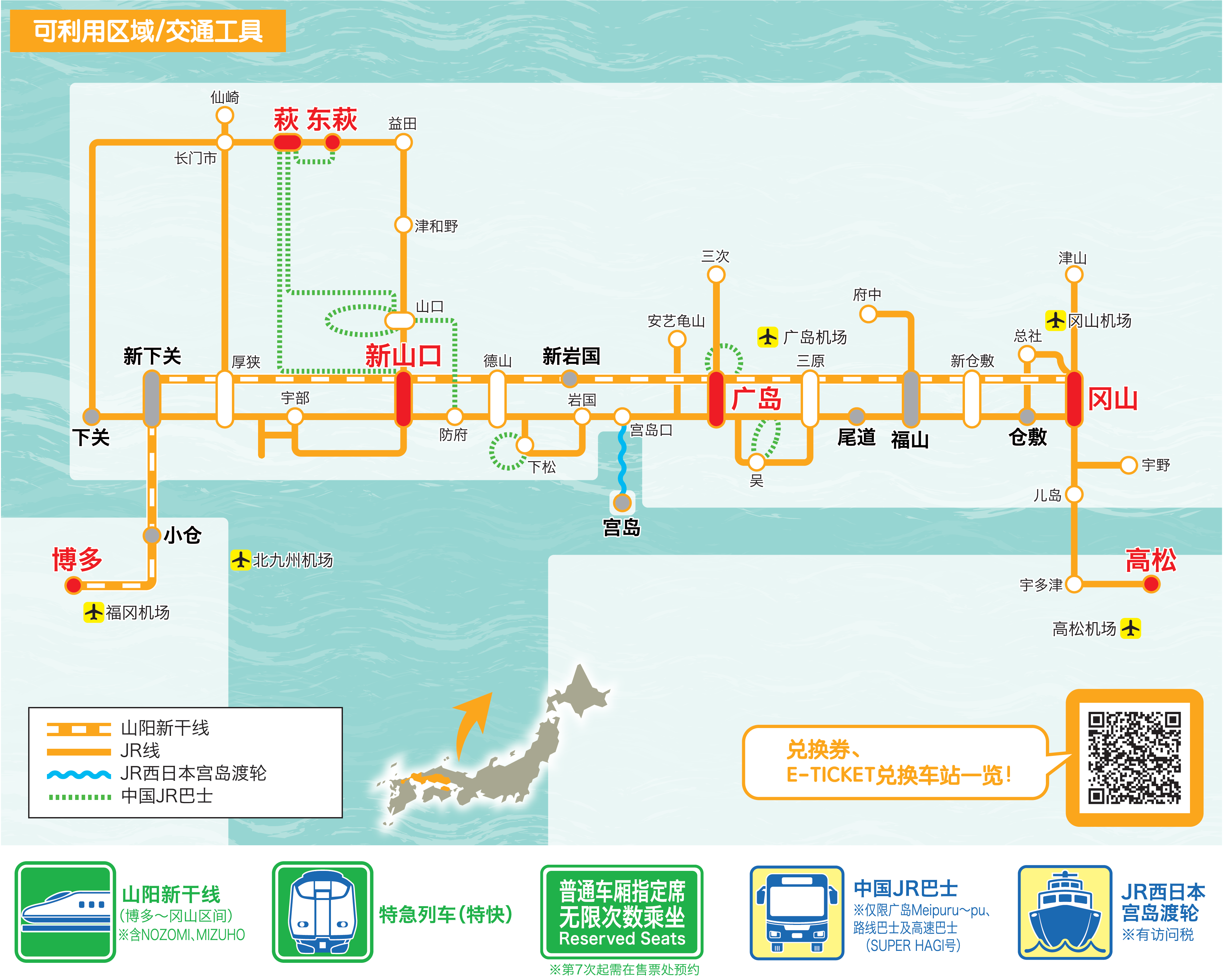 5. 可搭乘區間範圍請點選網址查看: https://www.westjr.co.jp/global/sc/ticket/pass/okayama_hiroshima_yamaguchi/#routes