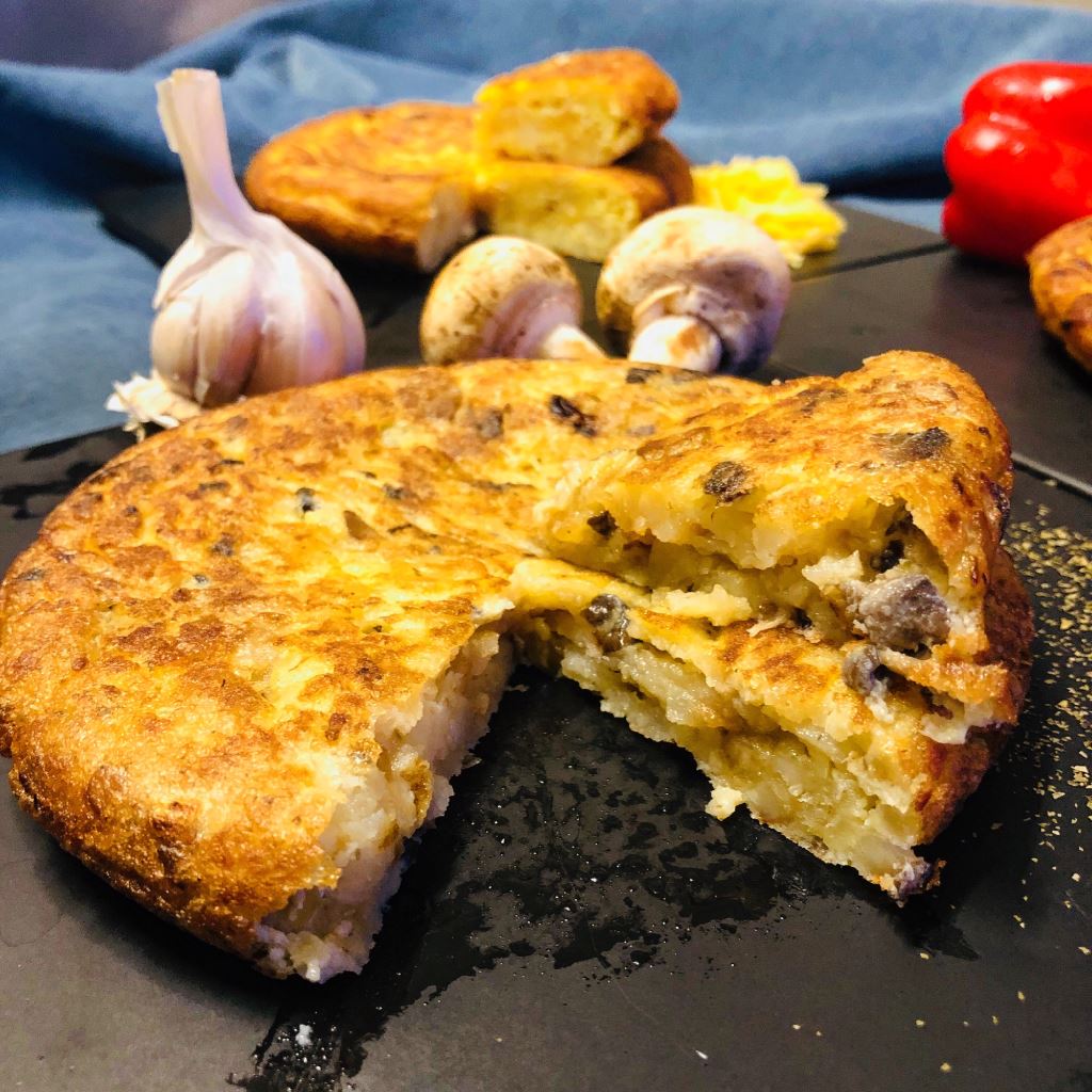 西班牙傳統料理,餐點烹飪過程只使用100%橄欖油,嚴選在地蔬菜和雞蛋,研發多種口味,甜椒、鮪魚、菇菇、起士、蒜苗、青蔥、玉米、印度等,每一種口味都各具特色,厚實的蛋餅極具份量,表皮酥脆金黃色澤、口感濕潤,為你呈現最道地的西班牙式風味蛋餅!