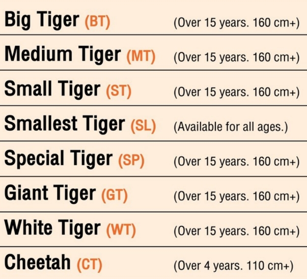 老虎互動套裝 + 往返接送 | 老虎種類 - 大老虎 + 中老虎 + 小老虎 + 最小老虎