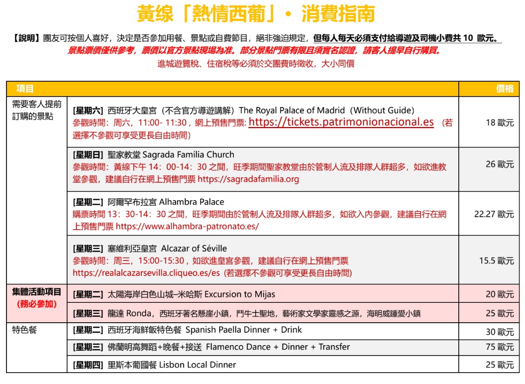 黃線南歐熱情7日遊─【成人票】12歲以上 或 【配房票】