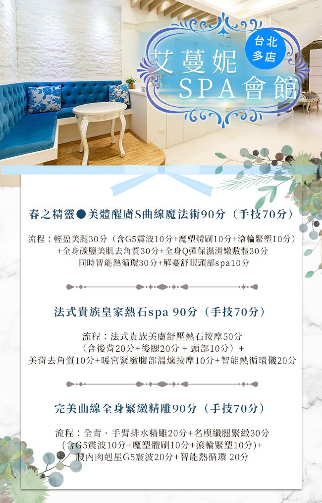 【享樂券】(台北多店)艾蔓妮SPA會館-(A)美體醒膚S曲線魔法術90分$399
