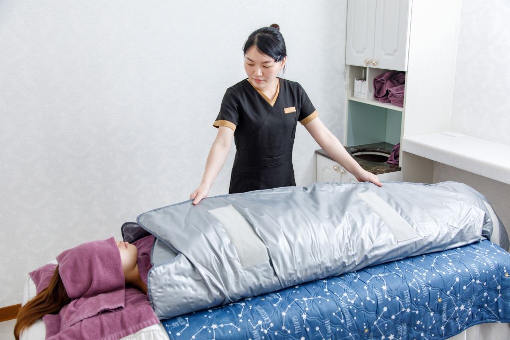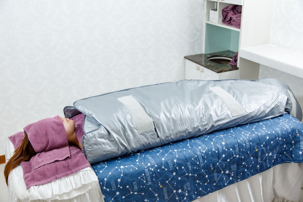 流程: 輕盈美腿30分(含G5震波10分+魔塑體刷10分+滾輪緊塑10分)+ 全身礦鹽美肌去角質30分 + 全身Q彈保濕滑嫩敷體30分 同時智能熱循環30分 + 解憂舒眠頭部spa10分