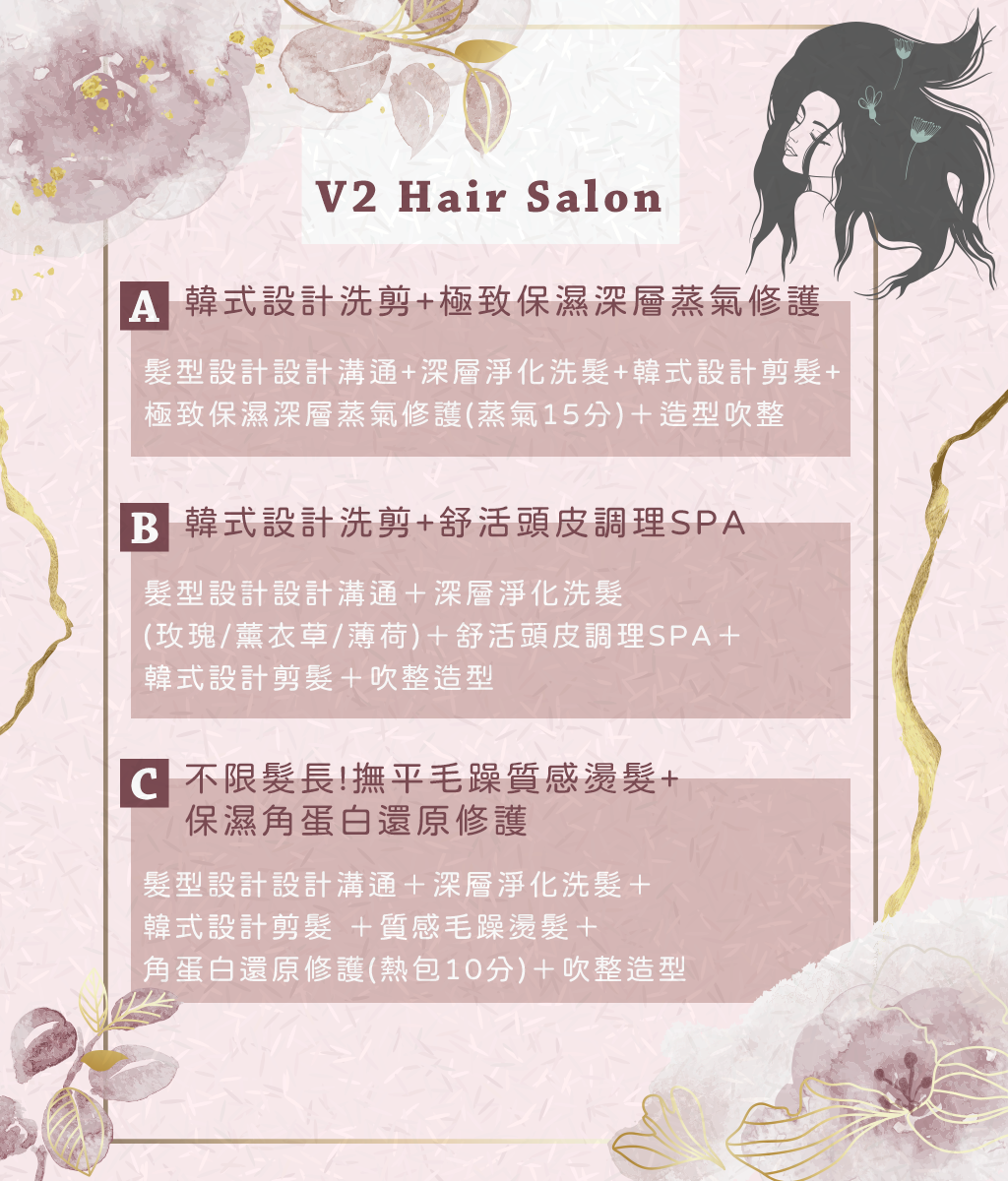 【享樂券】V2 Hair Salon-(A)韓式設計洗剪+極致保濕深層蒸氣修護