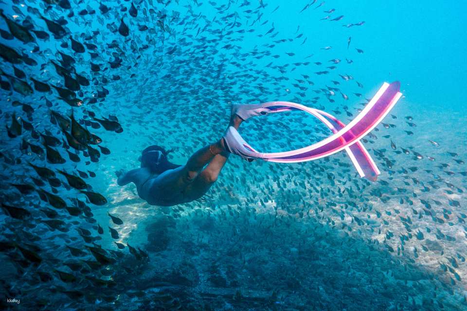 感受巨型「表孔珊瑚群」與被魚群環繞的震撼。 科技助力,引進水中推進器,讓您輕鬆享受無動力的滑行快感。